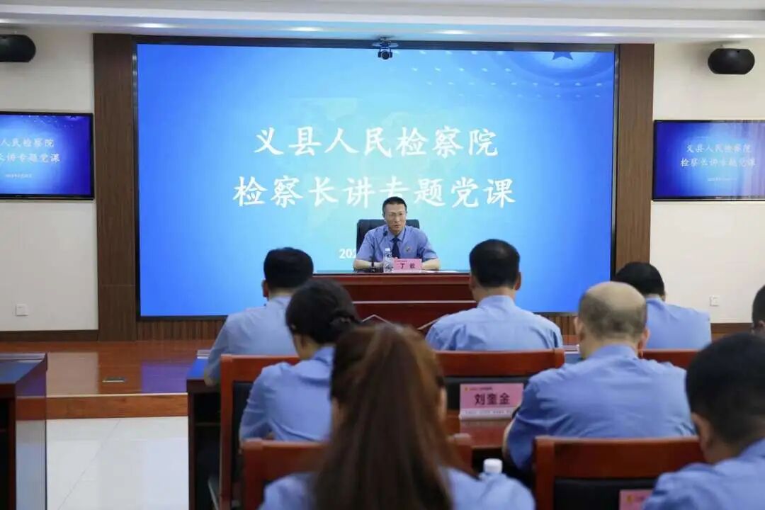 为深入学习贯彻习近平法治思想,强化思想理论武装,提升全院检察队伍建设水平,6月28日上午,义县人民检察院党组书记、检察长丁敏以“检察机关如何贯彻落实习近平法治思想”为题,为全体检察干警讲授了一堂主题鲜明、内容充实的“七一”专题党课。