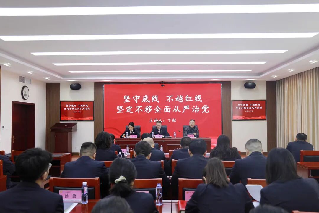 丁敏检察长结合主题教育相关要求与检察工作实际,以《坚守底线 不越红线 坚定不移全面从严治党》为题,为全院干警讲授党风廉政教育专题党课。党课结合历史故事和身边案例,剖析当今社会存在的腐败问题,深入讲解遵守党纪国法的重大意义,教育引导全院干警要端正态度,从案例中吸取教训,严守底线和红线,做一名合格的共产党员、优秀的新时代检察干警。