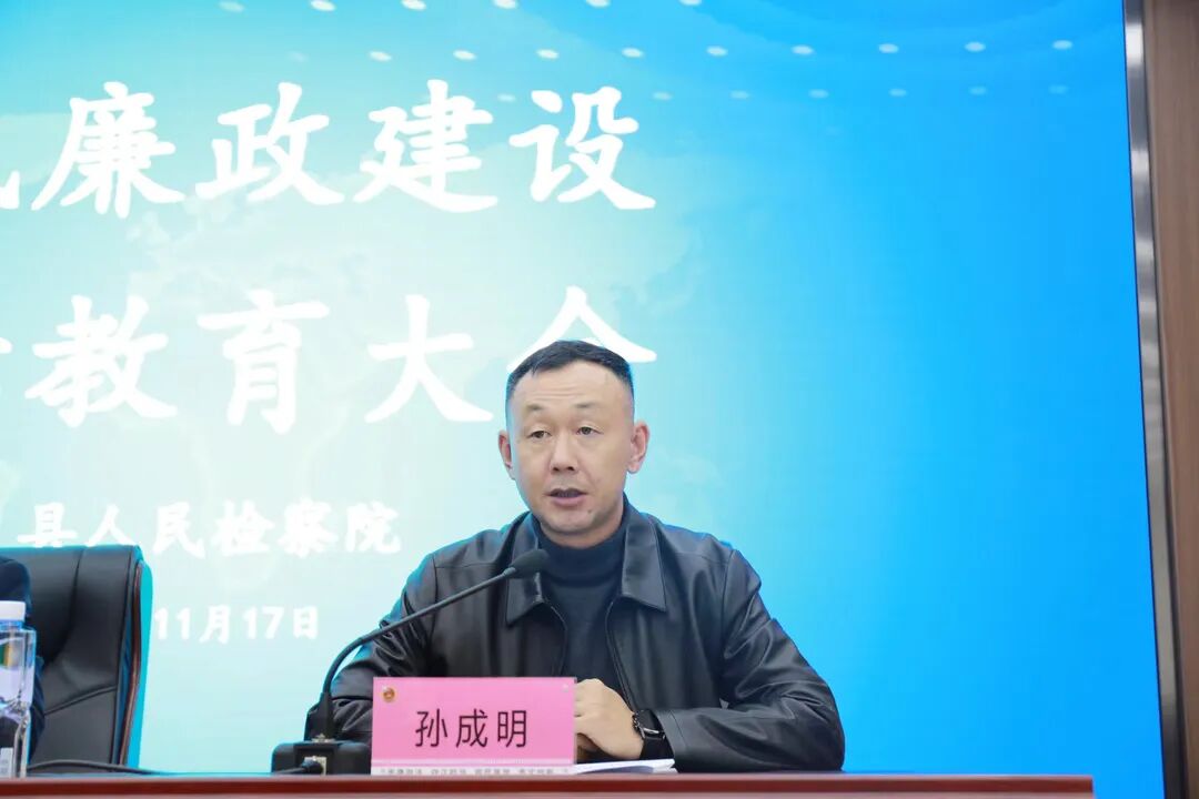 清风润万家,廉韵启新程。为加强清廉机关建设,推动全面从严治党、全面从严治检向纵深发展,11月17日,义县人民检察院召开党风廉政建设警示教育大会,院党组书记、检察长丁敏为全院干警讲授廉政党课。会议由党组成员、政治部主任徐旭主持。县纪委监委第二派驻组组长孙成明出席会议,院领导班子成员、检委会专职委员、全体检察干警参加会议。