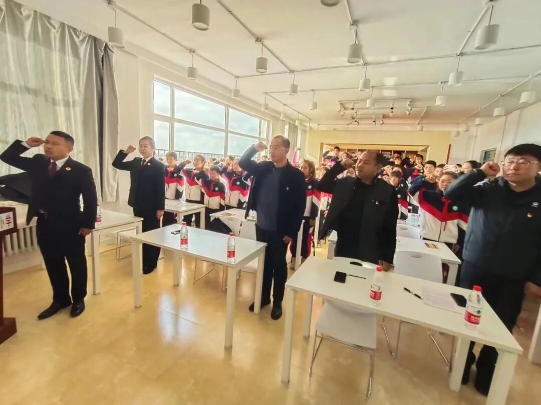 活动结尾,检察官、学校党员还与同学们一起体验了学生版的宪法宣誓,立下了自己的法治宣言。铿锵有力的宪法宣誓响彻校园,让全体师生经受一次强烈的心理震撼,将尊重宪法、信仰宪法、维护宪法的观念植根于心中,使爱宪守宪成为全校的共识和自觉行动。