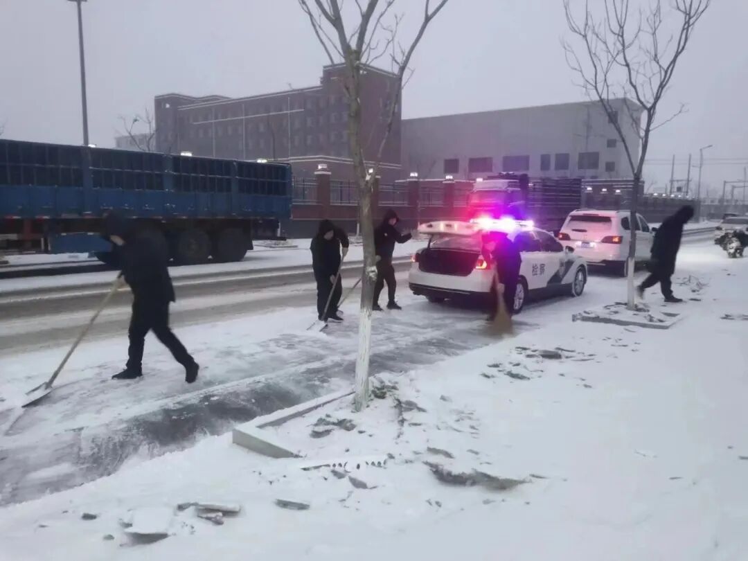 在元旦假日第一天的傍晚,院里接到县里的扫雪任务后,办公室干警和后勤临时人员即刻出发,对我院包保的街道和院内积雪进行清扫。天气寒冷,雪层很厚,大家拿着除雪铲、铁锹等除雪工具,分工有序、齐心协力、默契配合,纷纷投入到铲雪除冰行动中,全力清除机关大院和街道上的积雪和暗冰,忙碌的身影在皑皑白雪的映衬下勾勒出一道亮丽的风景线。这场大雪在2023年只留下淡淡的痕迹,但期年之后会幻化成不灭的记忆。