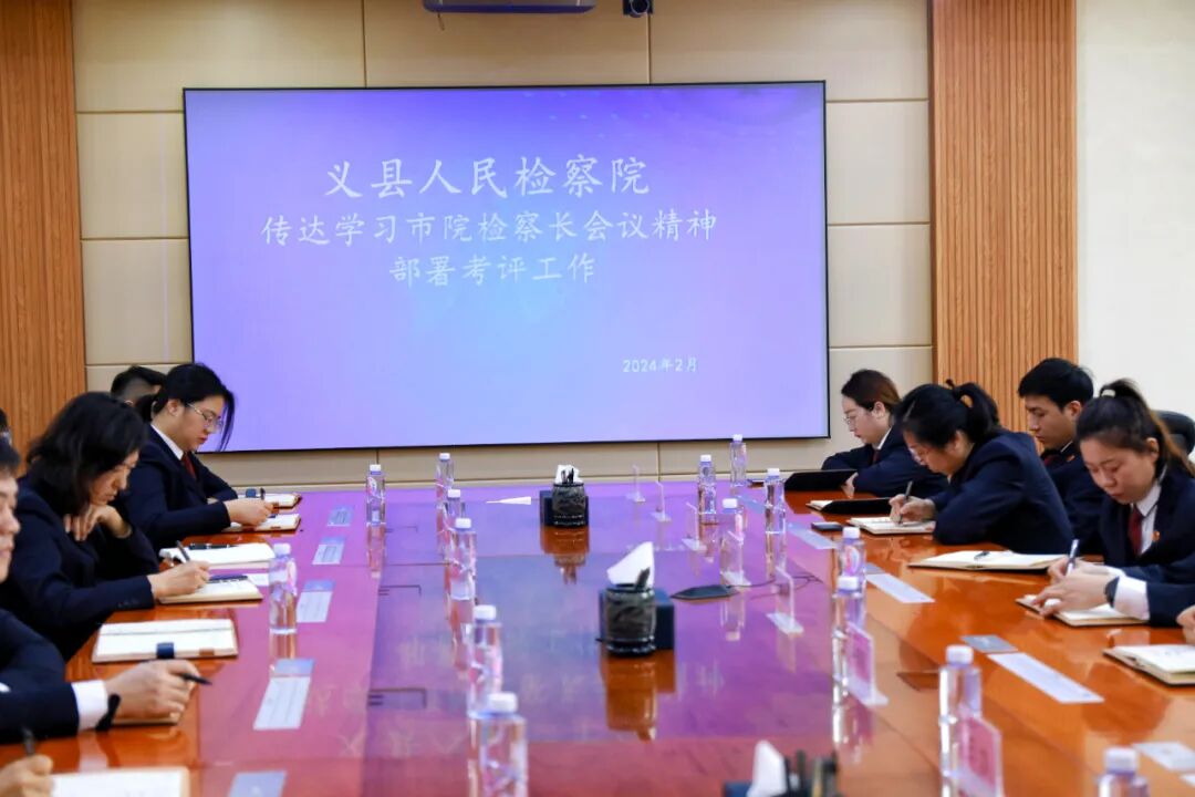2月19日,义县人民检察院召开党组(扩大)会议,院党组书记、检察长丁敏传达学习全市检察院检察长重要讲话会议精神,紧密结合工作实际,研究贯彻落实举措,部署安排2024年度考评工作。院领导及中层正副职参加会议。