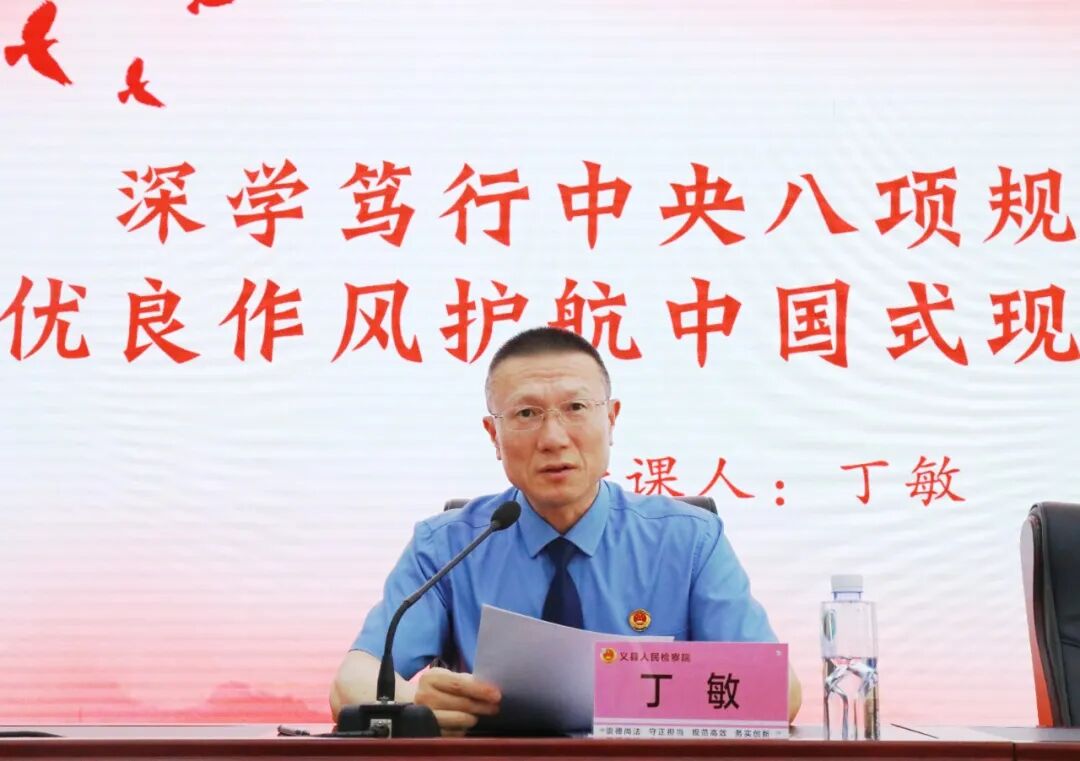 会上,党组副书记、副检察长李扬通报了近期检察系统违反中央八项规定精神典型案例;院党组书记、检察长丁敏以“深学笃行中央八项规定精神 以优良作风护航中国式现代化新实践”为题,为全院检察干警讲授专题党课。