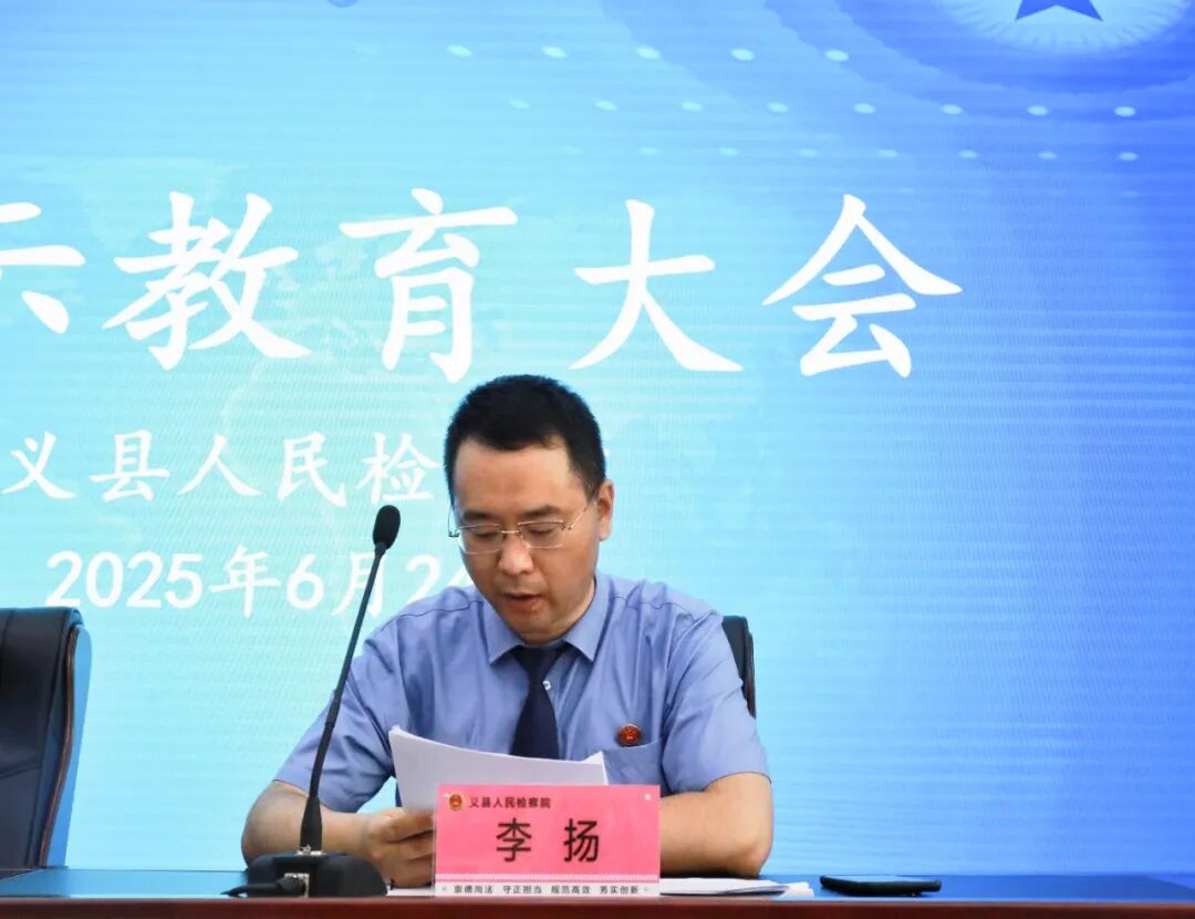 为深入贯彻中央八项规定精神学习教育,教育引导全院检察干警知敬畏、存戒惧、守底线,进一步增强廉洁自律意识和拒腐防变能力,6月25日,义县人民检察院召开警示教育大会。