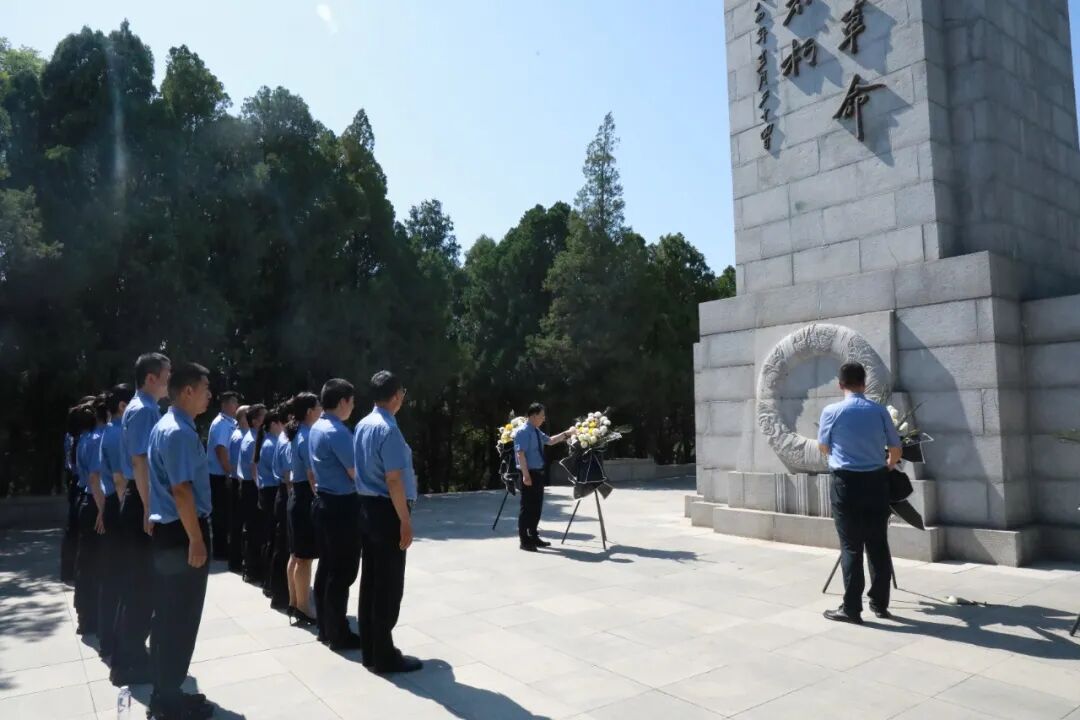 纪念碑前,在党组副书记、副检察长李扬领誓下,全体党员重温入党誓词,铿锵有力的宣誓声回荡在山林之间,表达了大家对党的无限忠诚和坚定不移跟党走的信念。